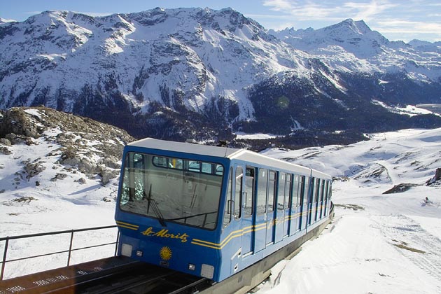 Near the upper station of the Corviglia funicular on January 17, 2005.