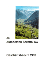 AS AS Autobetrieb Sernftal AG Geschäftsbericht 1982 12 Seiten, auf Titelseite montierte Ansichtskarte von Engi, 21 x 29,7 cm Broschüre (geheftet) herausgegeben von der |