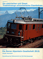 Claude Jeanmaire Die elektrischen und Diesel-Triebfahrzeuge schweizerischer Eisenbahnen Zweiter Teil: Die Berner Alpenbahn-Gesellschaft (BLS) Darstellung des Rollmaterials der BLS-Betriebsgruppe Archiv Nr. 12 352 (32 nummerierte) Seiten, 630 Abbildungen s/w, 20,5 x 27,6 cm Leinenband mit Schutzumschlag ISBN 3-85649-012-0 erschienen bei Verlag für Eisenbahn- und Strassenbahnliteratur, Basel, 1972 |