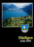 Därligen 1242-1992 Herausgegeben aus Anlass der 750-Jahr-Feier 112 Seiten, 40 Abbildungen s/w, 7 Wappen mehrfarbig, 16,8 x 23,7 cm (mit einem Kapitel Verkehrsgeschichte: 12 Seiten, 3 Abbildungen Bahn, 2 Schiff) Leinenband mit Schutzumschlag herausgegeben vom OK 750-Jahr-Feier, Därligen, 1992 |