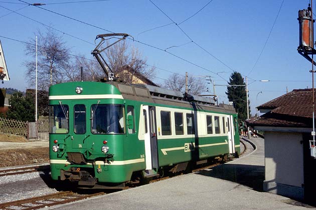 Zug 22 nach L'Isle-Mont-la-Ville wartet am 7. Februar 1997 in Apples auf seine Abfahrt.
