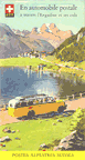 PTT En automobile postale à travers l'Engadine et ses cols Postes alpestres suisses 8 pages, 4 illustrations n/b, 1 carte de panorama en couleurs, sans échelle, 44 x 20,5 cm, pliée 11 x 20,5 cm dépliant publié par le |