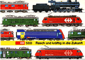 Fritz Rufer (Text), Rolf Schmidt (Zeichnungen) und J. Schetty (Herausgeber) / Junior Club SBB SBB Rasch und kräftig in die Zukunft 32 Seiten, 69 Abbildungen, meist vierfarbig und meist Zeichnungen, weitere auf Umschlag, 24 x 17 cm Broschüre (geheftet) herausgeben von der |