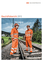 SOB SOB Südostbahn Geschäftsbericht 2012 48 (46 nummerierte) Seiten, 38 Abbildungen, davon 35 vierfarbig, 21 x 29,7 cm Broschüre (geheftet) herausgegeben von der |