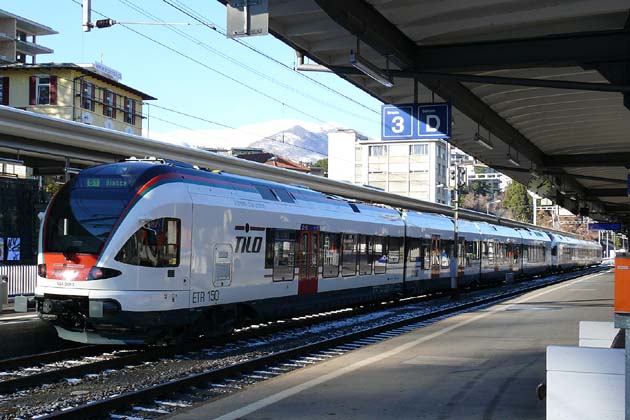 A new "FLIRT" shuttle train of the S1 line at Lugano on January 17, 2008.