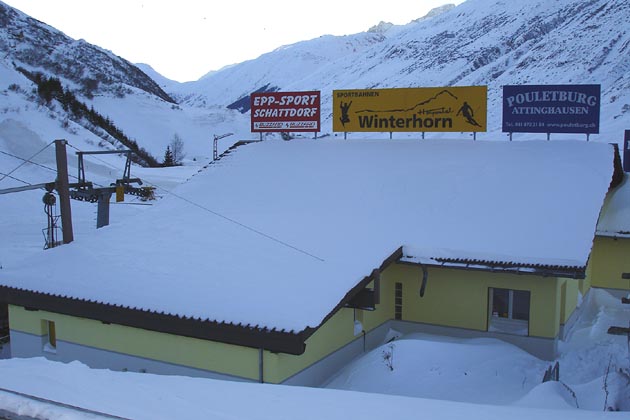 Die Talstation Hospental am 6. Januar 2006. Die Sesselbahn ist seit 2008 außer Betrieb.